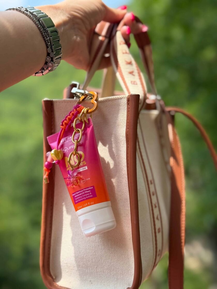 Μοναδικά σχεδιασμένο χειροποίητο charm – κομψό, διακριτικό, πρακτικό. Ενώνεται με το σωληνάριο και κρεμιέται στην τσάντα ή τα κλειδιά σου. Γιατί τώρα, δεν έχεις καμία δικαιολογία να μη φορέσεις το αντηλιακό σου.