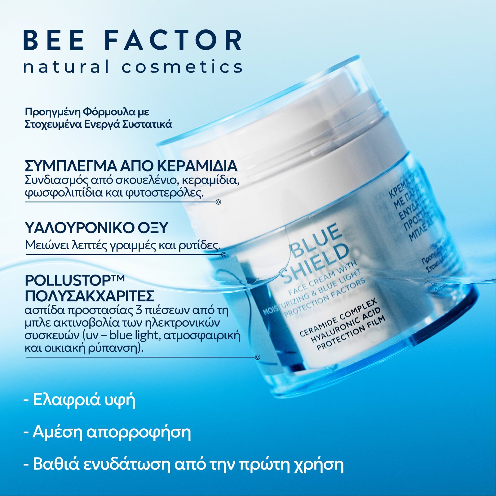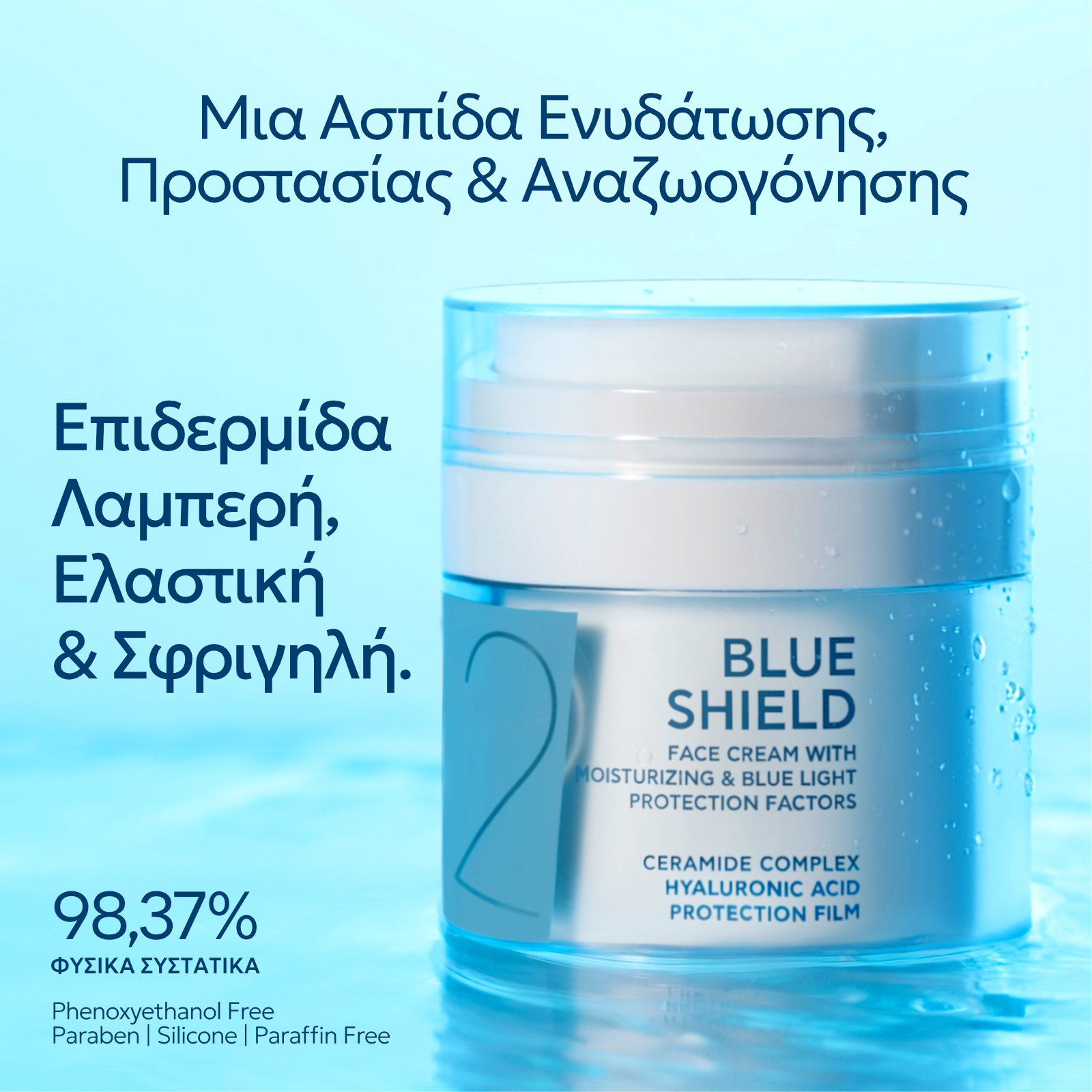 Η BLUE SHIELD™ λειτουργεί σαν ασπίδα καθημερινής προστασίας για την επιδερμίδα που ζει σε σύγχρονους ρυθμούς.