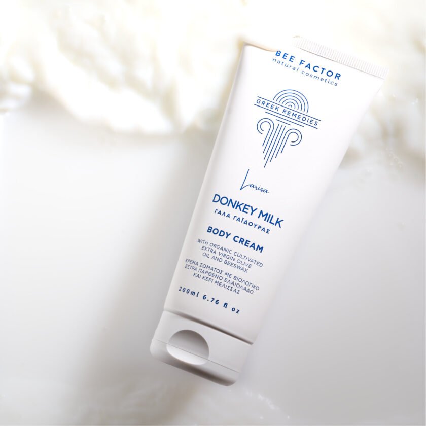 Η Donkey Milk Comfort Body Cream ανήκει στη συλλογή Greek Remedies και αξιοποιεί τις μοναδικές ιδιότητες του ελληνικού γάλακτος γαϊδούρας από τη Λάρισα Θεσσαλίας – ενός συστατικού με μακρά ιστορία στην περιποίηση του δέρματος.